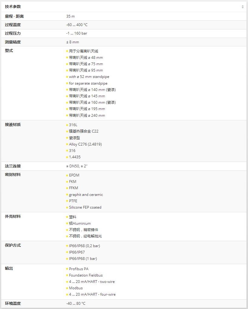 VEGAPULS 66雷達傳感器用于惡劣過程條件下液體的持續(xù)性物位測量。 適于在儲藏和過程容器以及豎管使用。 VEGAPULS 66雷達傳感器有不同天線種類,應(yīng)用廣泛。